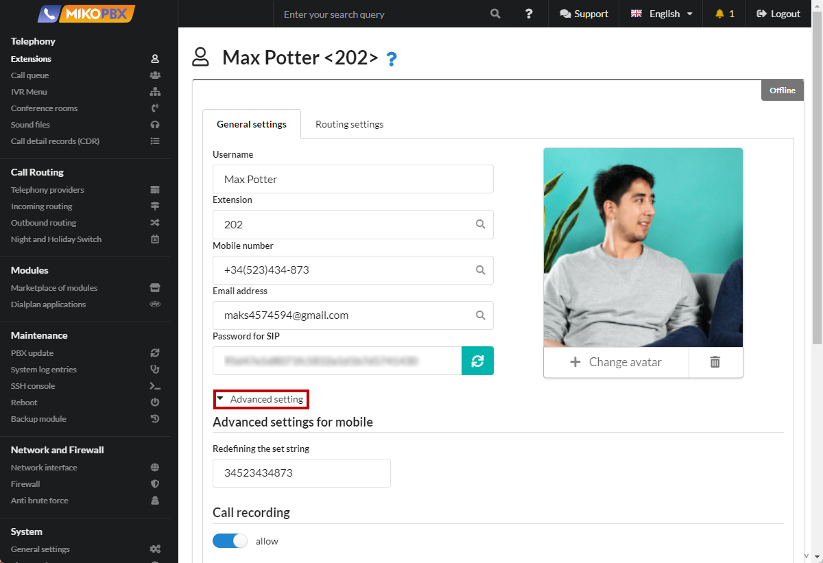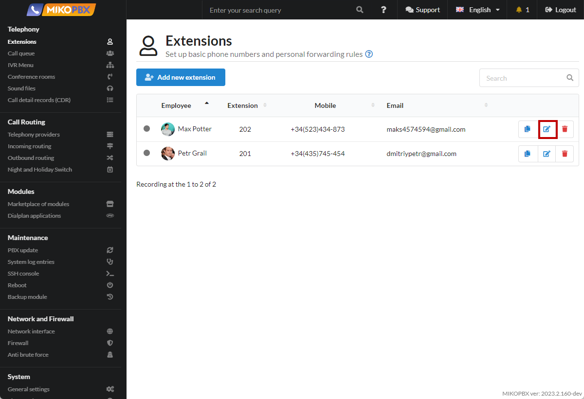 When a new Employee is added to the PBX, a SIP account with a numeric internal number is created on the PBX. In some cases, for security reasons, it is necessary to change the name for authorization of this employee.