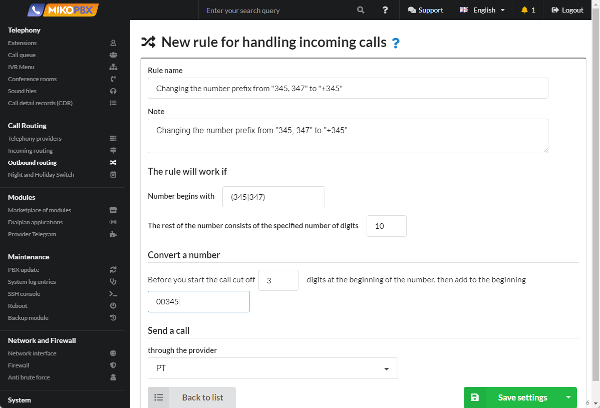 # Changing the number prefix from "345, 347" to "+345"