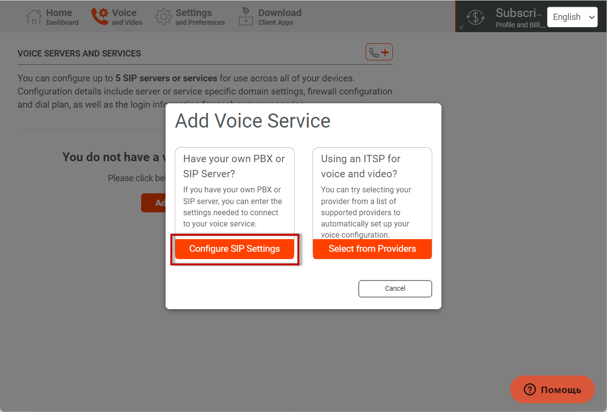 4. Choose **"Configure SIP Settings"**.