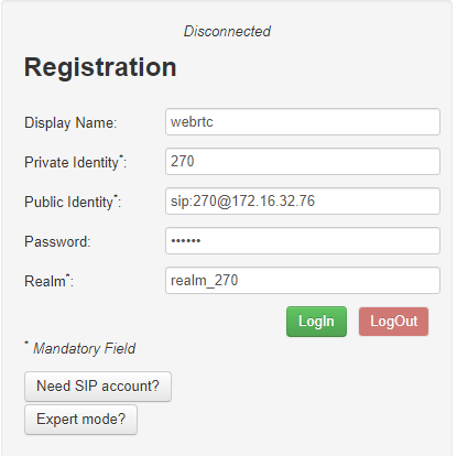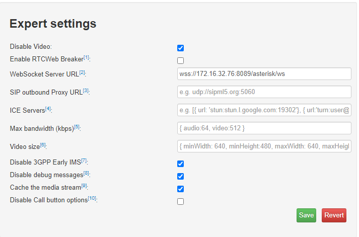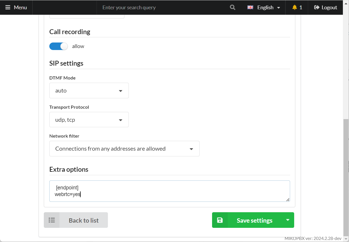 Click "**Save**". From this moment, this internal number will work *only* using the WebRTC protocol.