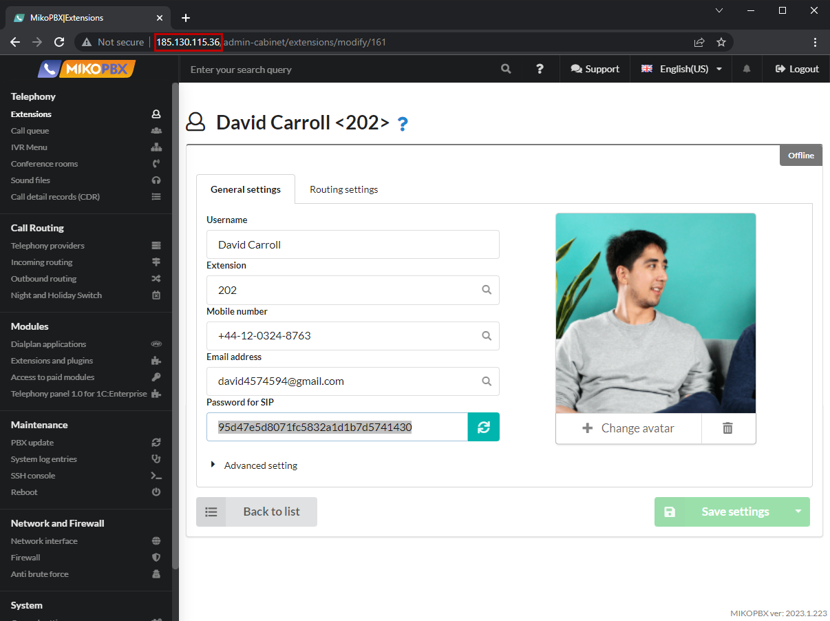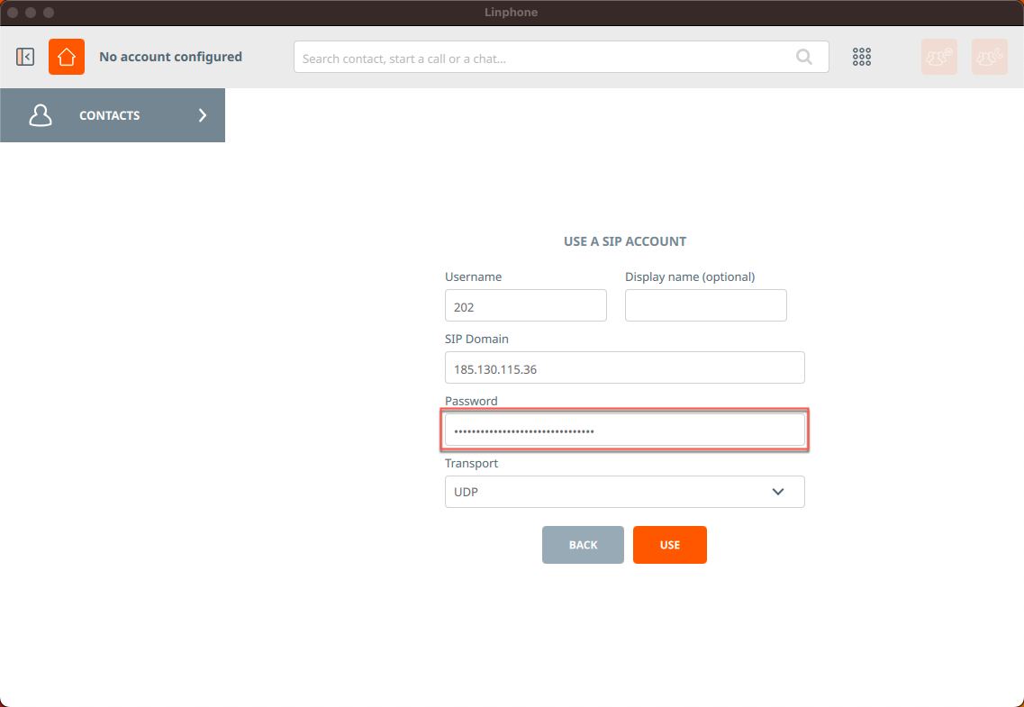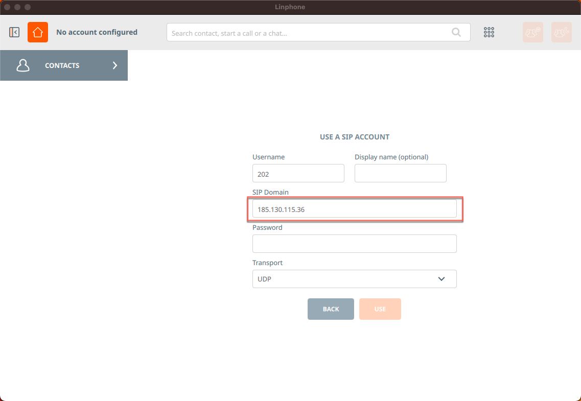 5. In the "**SIP Domain**" field, enter the **IP address** of the MikoPBX you are going to connect to&#x20;