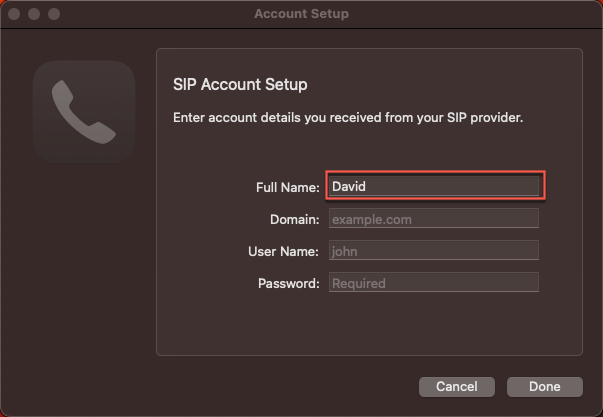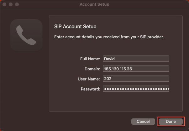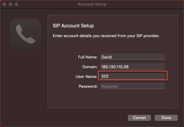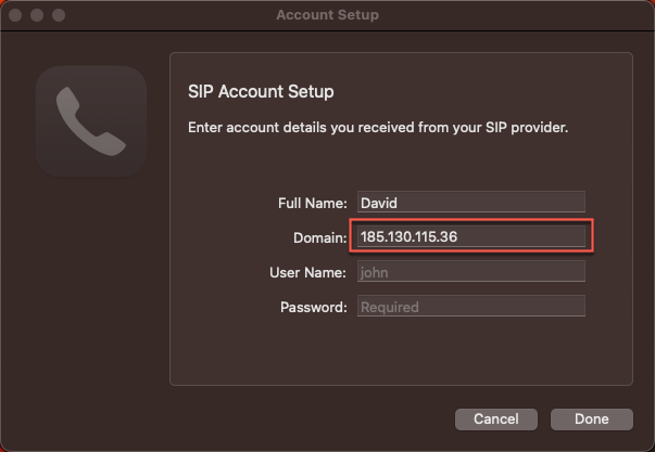 2. In the "**Domain**" field, enter the **IP address** of the MikoPBX to which the connection is being made