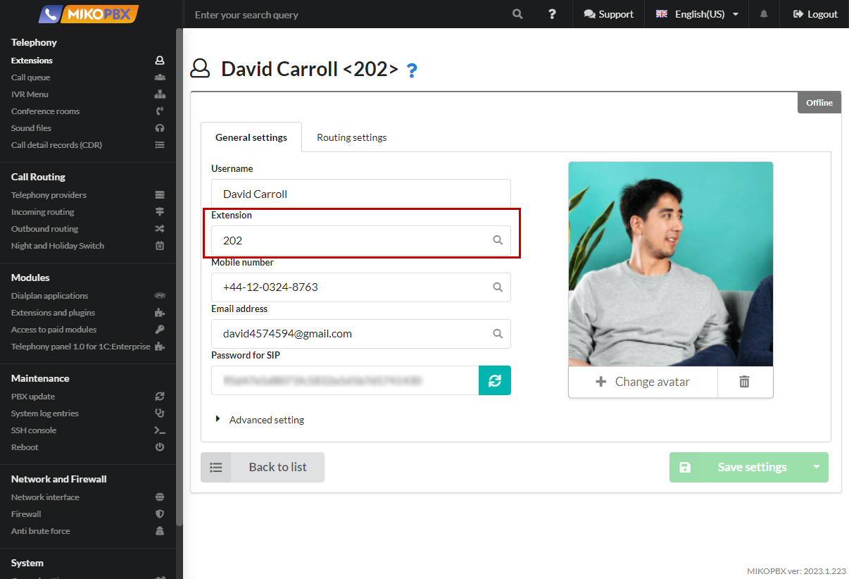 The green indicator on the top indicates successful authorization. Also, the status <mark style="background-color:green;">Online</mark> should be displayed on the PBX for this internal number.