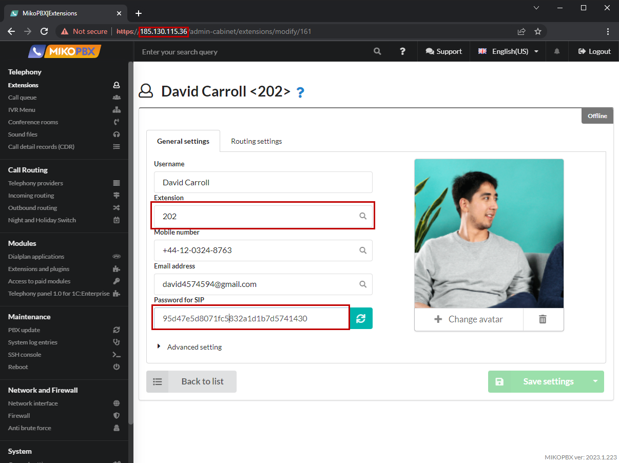 Go to the employees section, select the desired internal number and copy the necessary data.