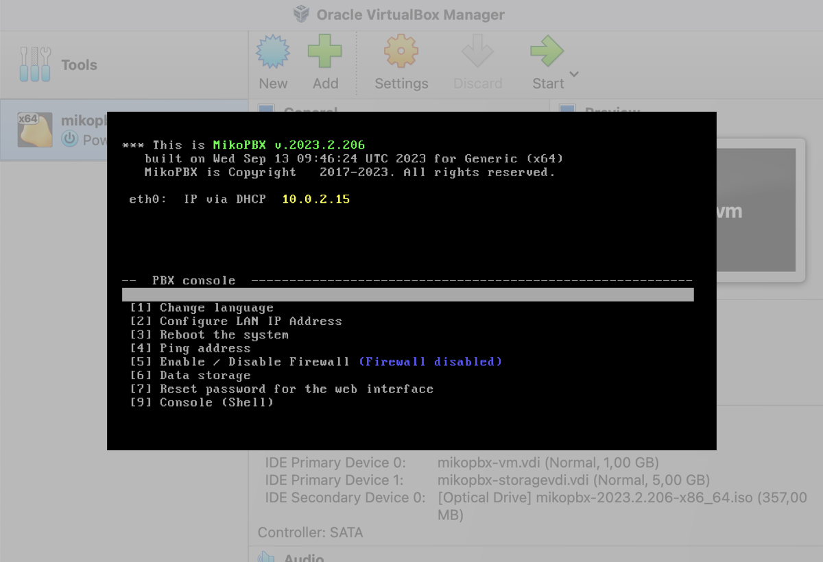 <figure><img src="https://835495363-files.gitbook.io/~/files/v0/b/gitbook-x-prod.appspot.com/o/spaces%2FsZ8acWnNlSalIHQjMFu1%2Fuploads%2FCVE1NfzQJYmsCh6ZLWoq%2FMikoPBXupgrade_eng_12.png?alt=media&#x26;token=18a6293a-d6a0-4abd-835c-0025dda8e840" alt=""><figcaption><p>MikoPBX Console</p></figcaption></figure>