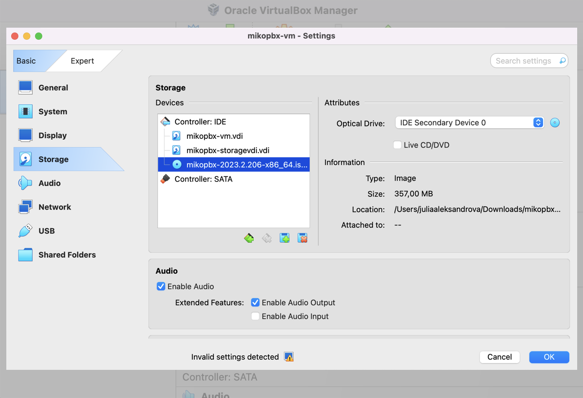 In VirtualBOX, open the settings of the virtual machine where the PBX is installed.\