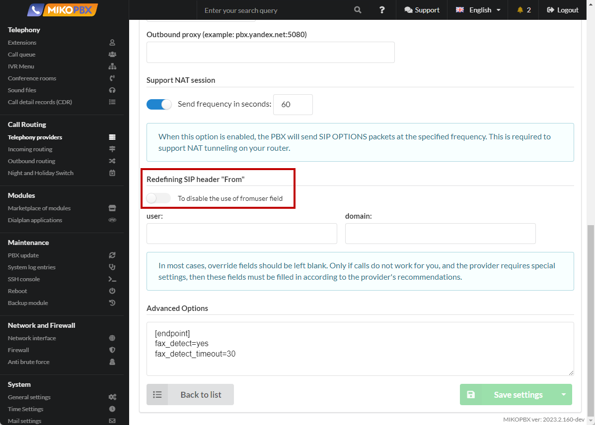 You can override almost all parameters. For example, when using chan_pjsip, the provider is described with the following sections: