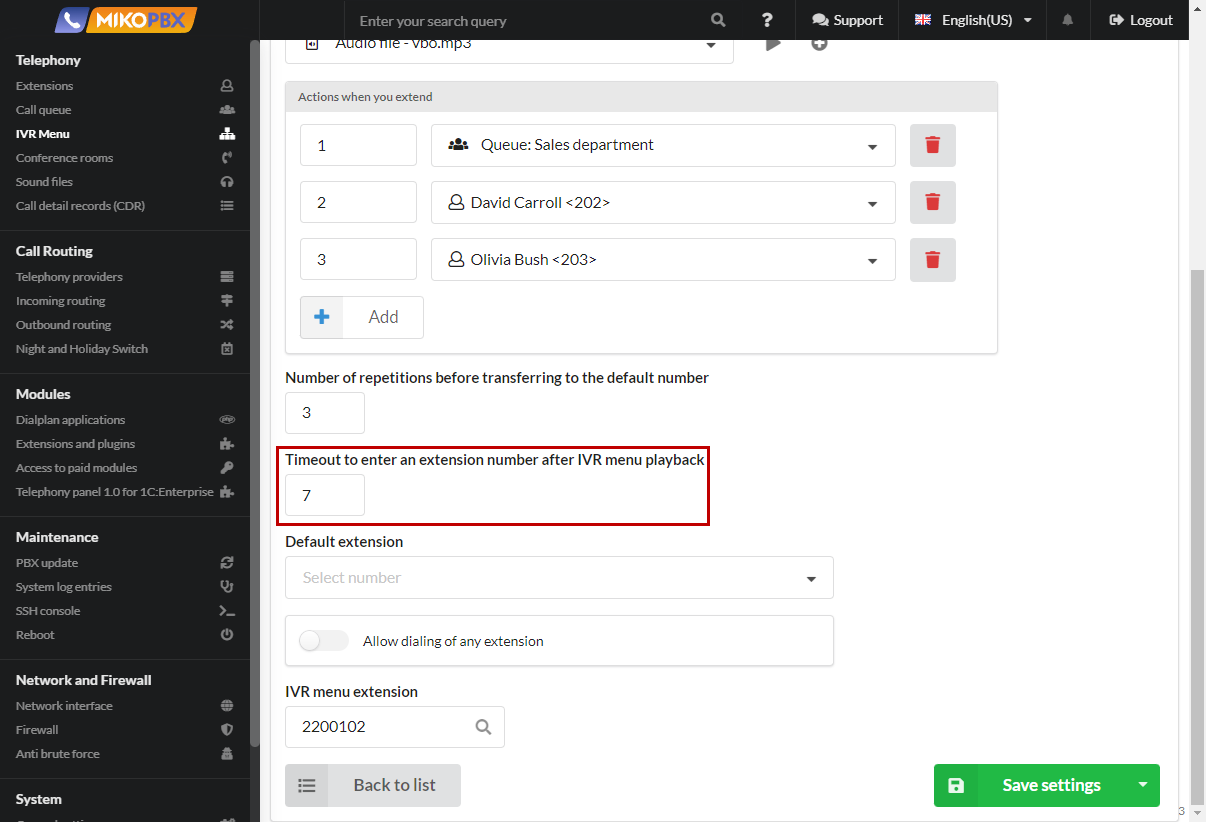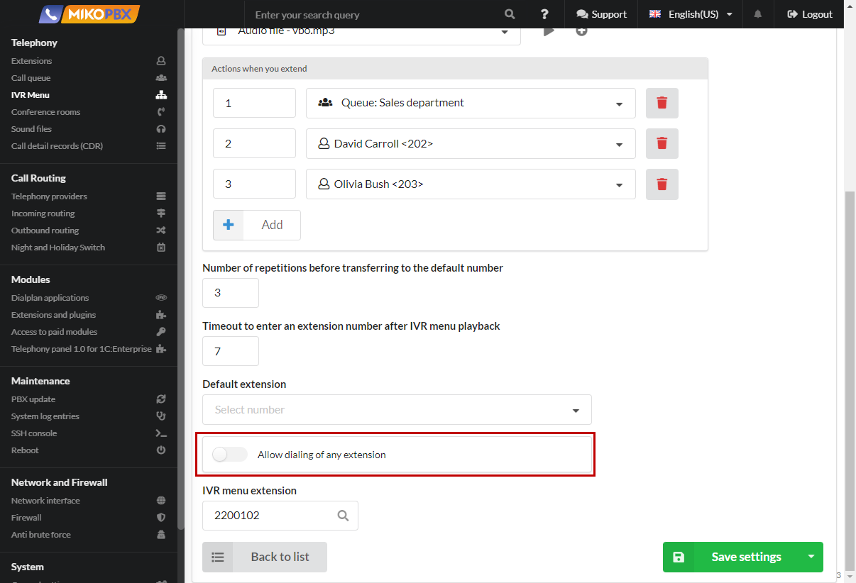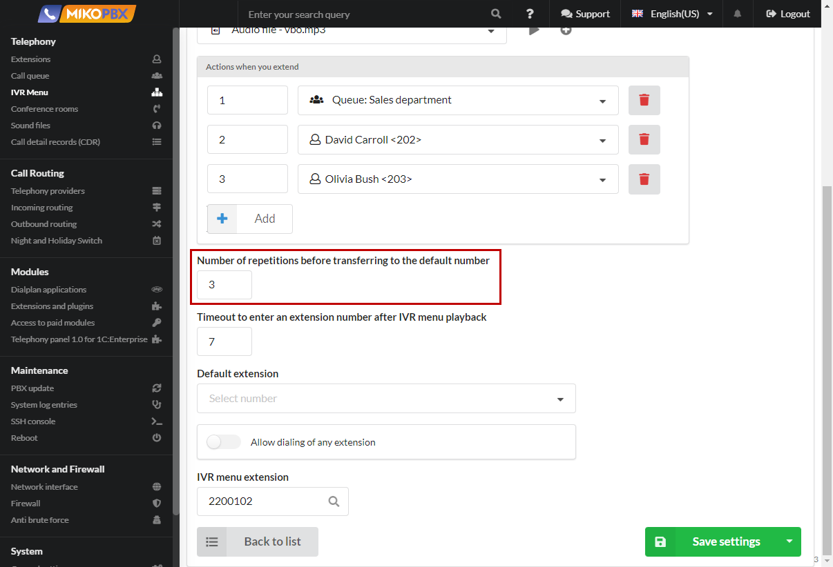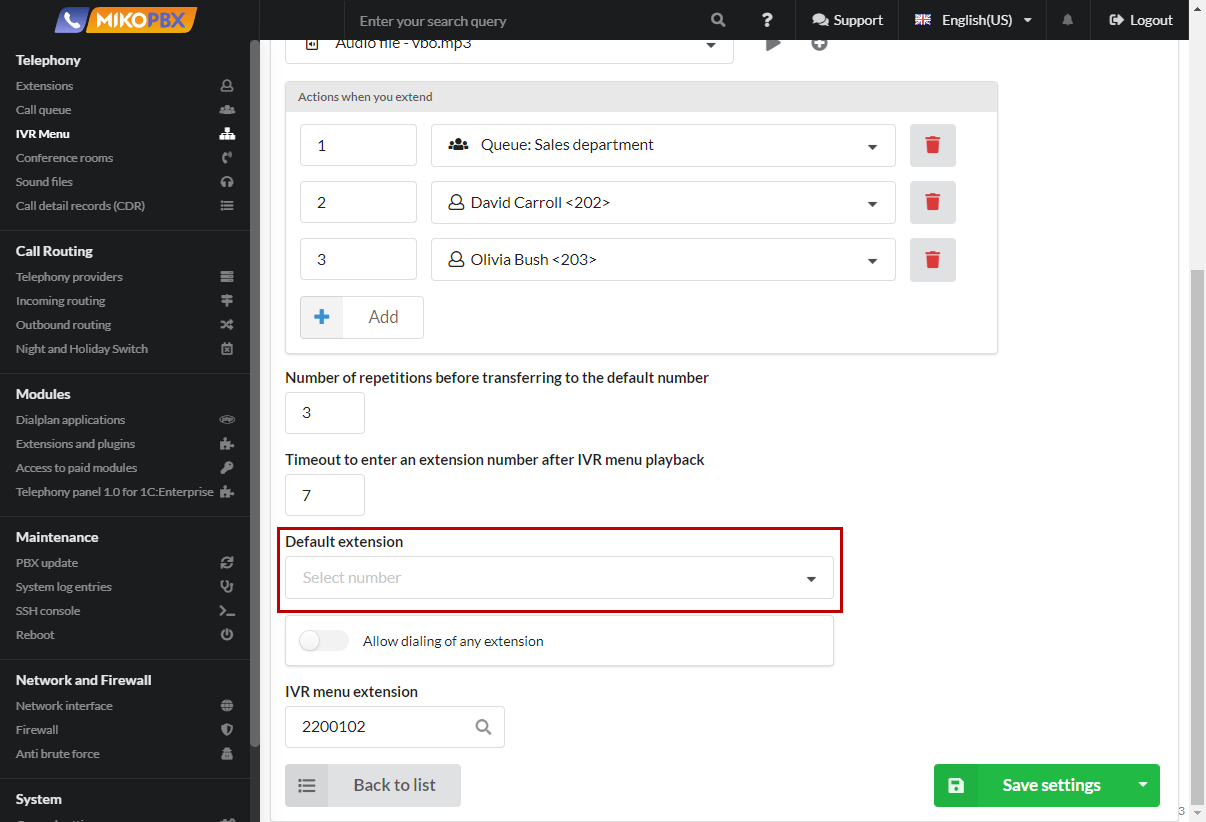 Creating and configuring IVR menu in MikoPBX