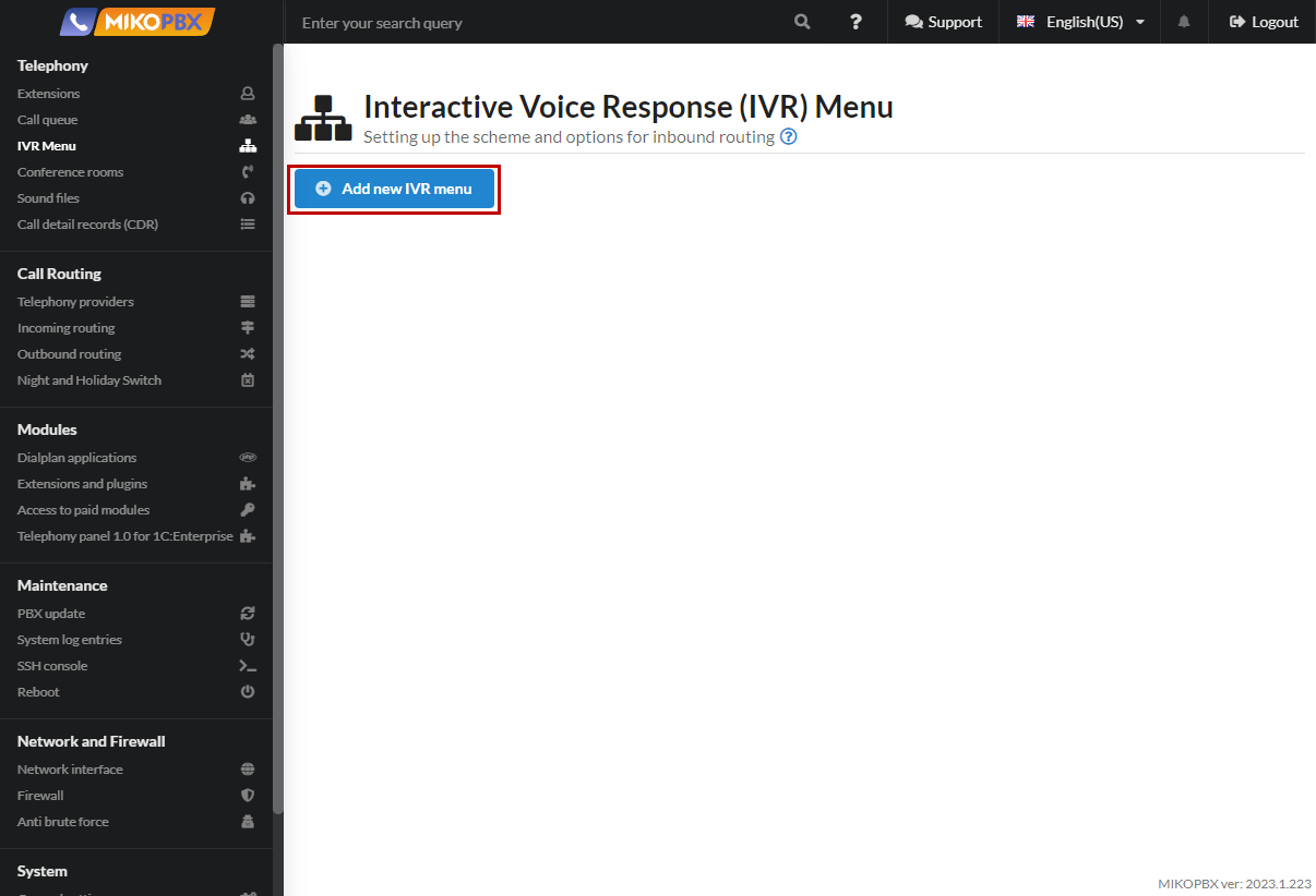 Go to "Telephony" → "IVR menu" section.