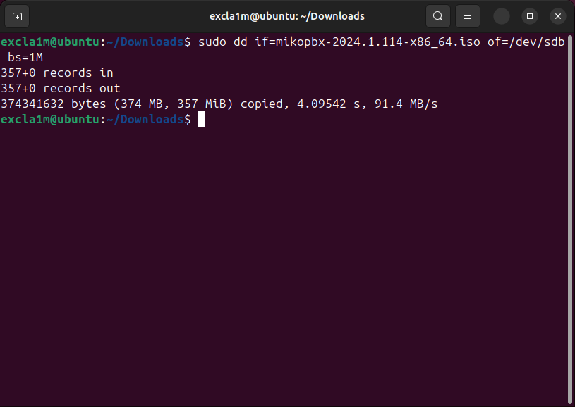 sudo dd if=mikopbx-2024.1.114-x86_64.iso of=/dev/sdb bs=1M