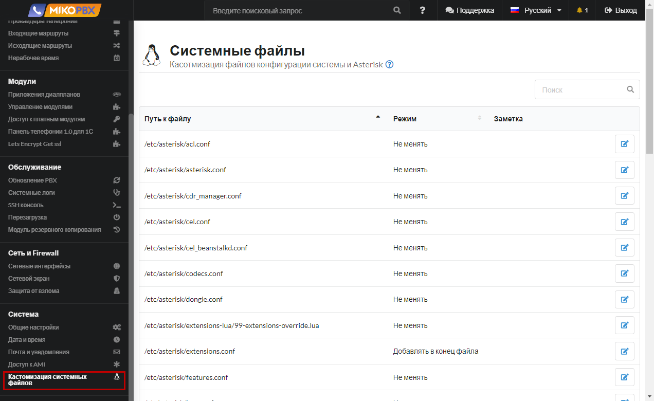 1. Перейдите в раздел  «**Система**» -> «**Кастомизация системных файлов**»