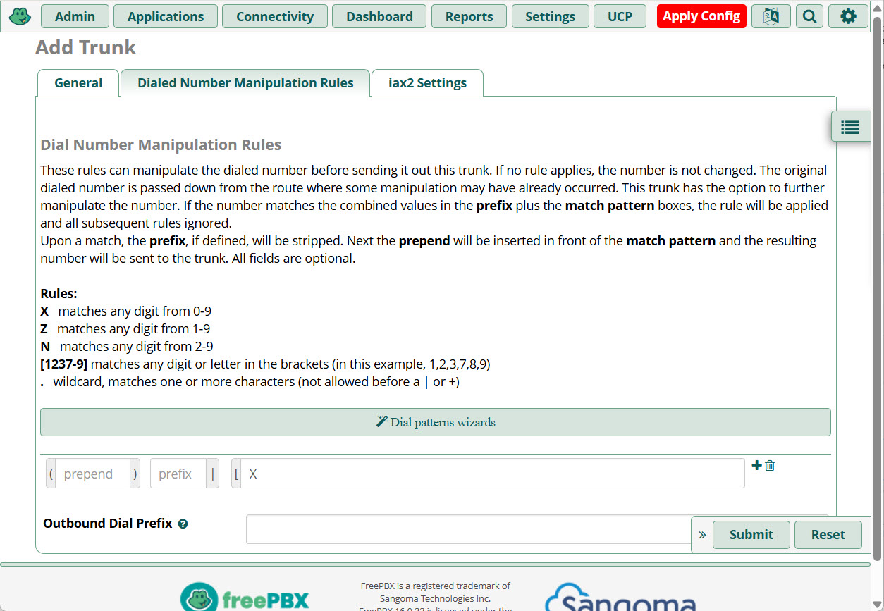 3. Перейдите на вкладку «**Dialed Number Manipulation Rules**» задайте шаблон для исходящих: