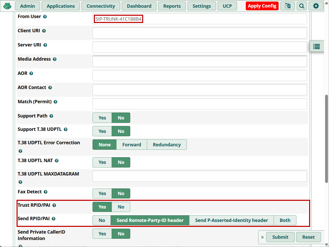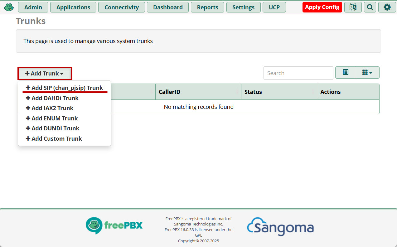 Создание транка FreePBX
