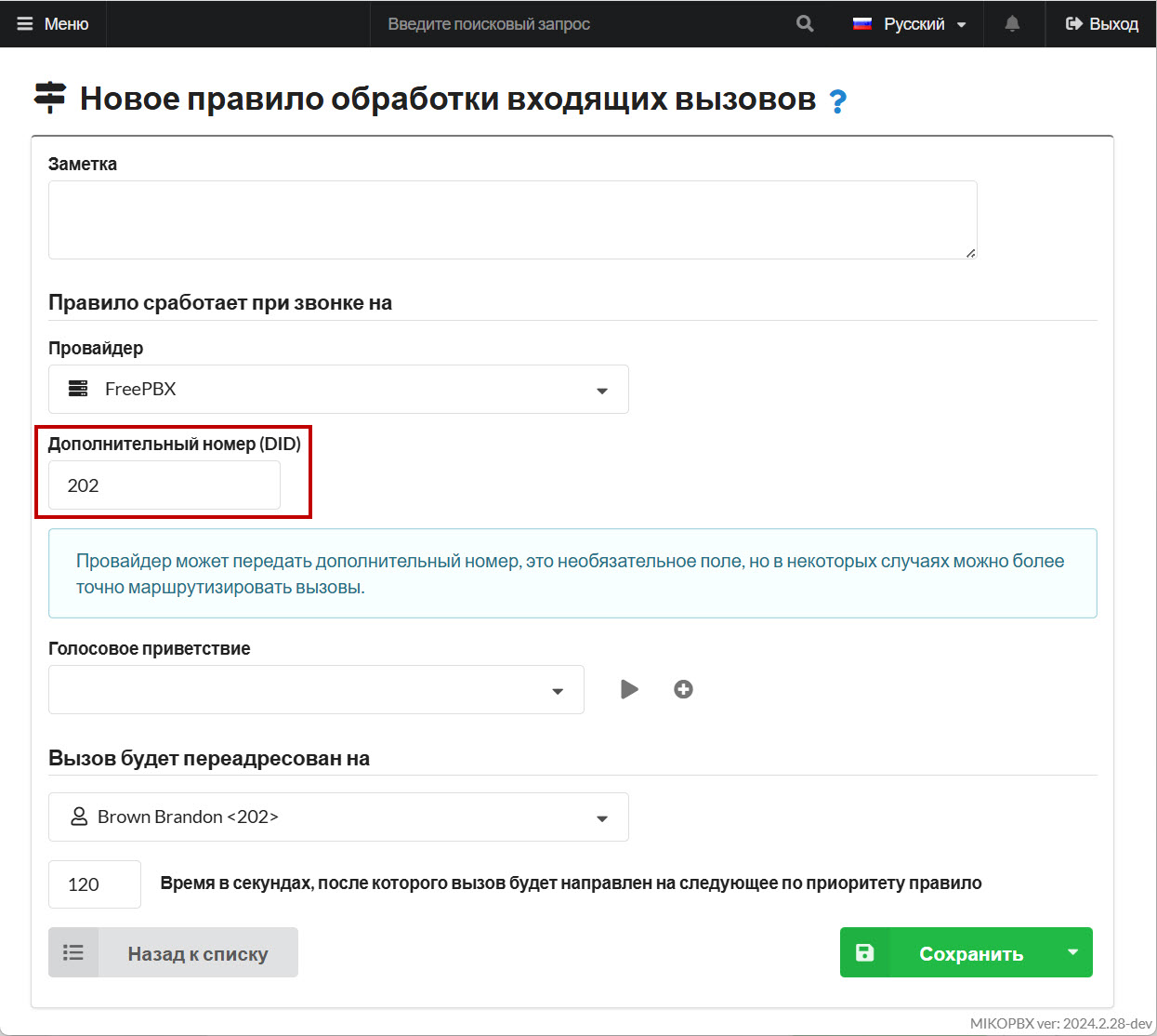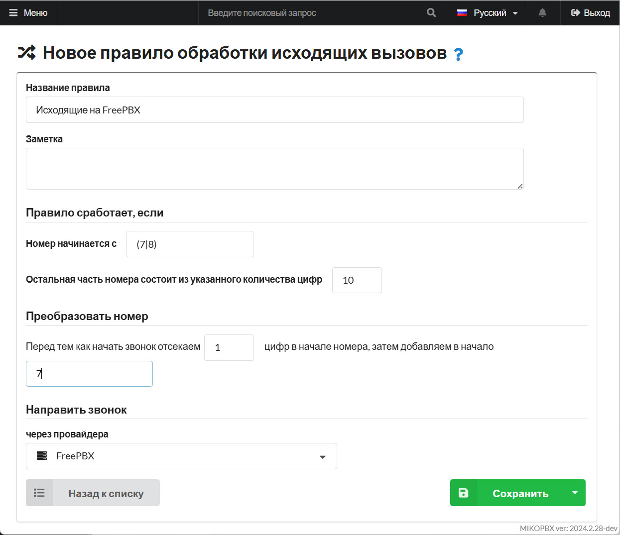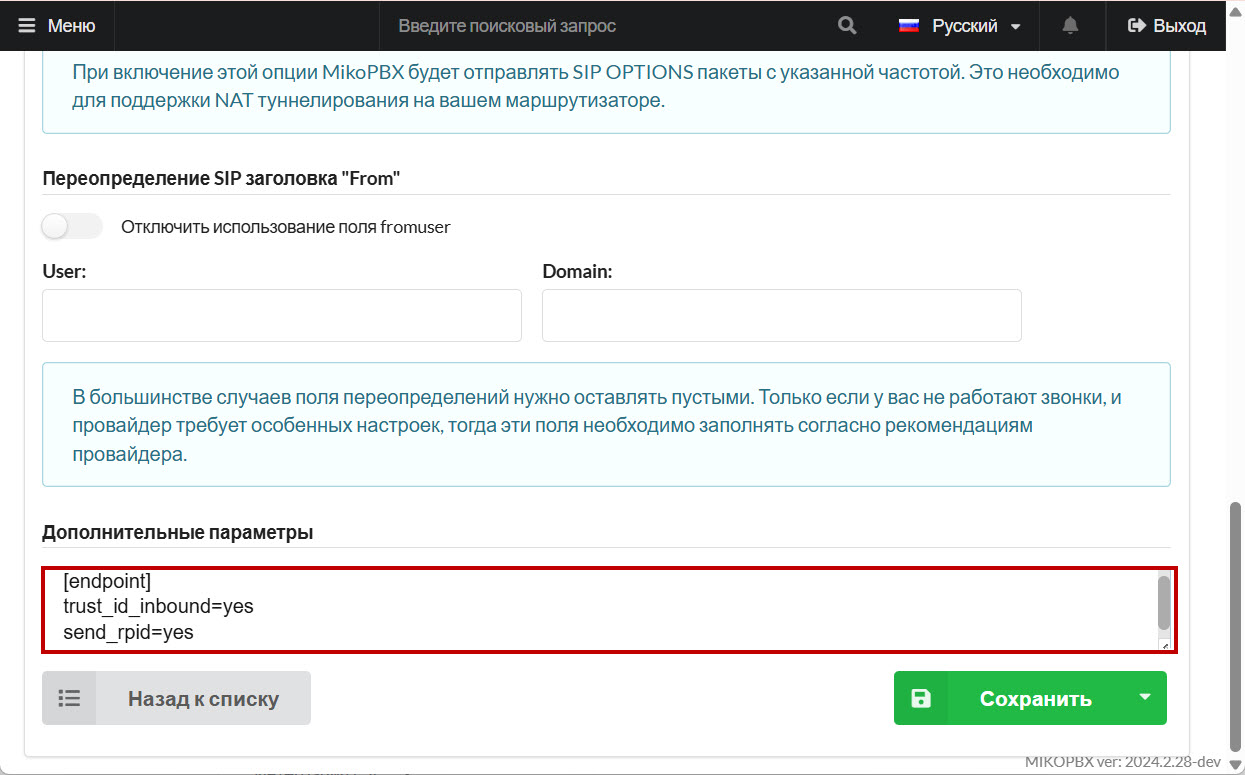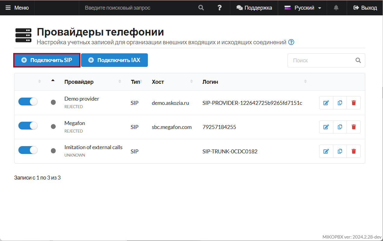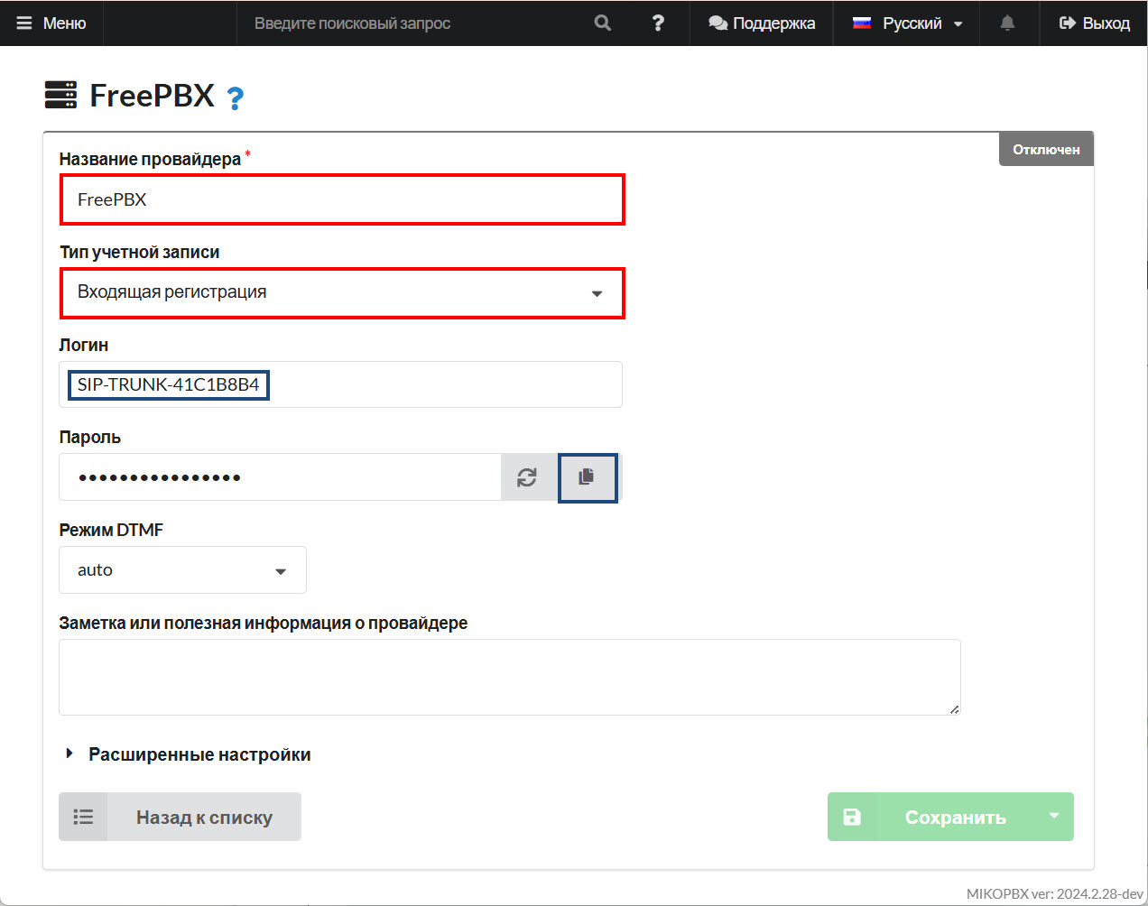 Создание провайдера MikoPBX