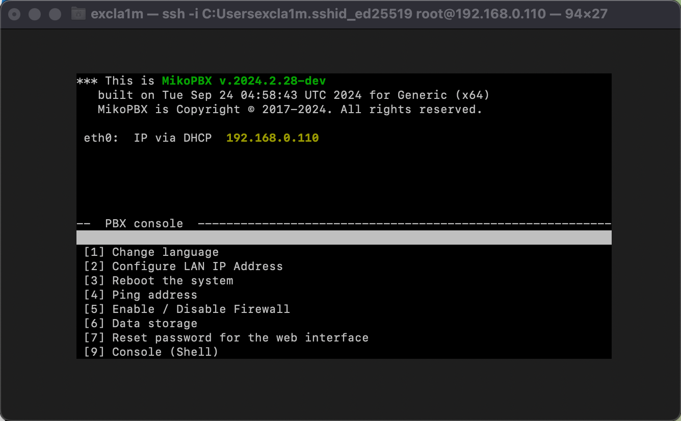 Подключение к MikoPBX по SSH с помощью Powershell (Terminal)