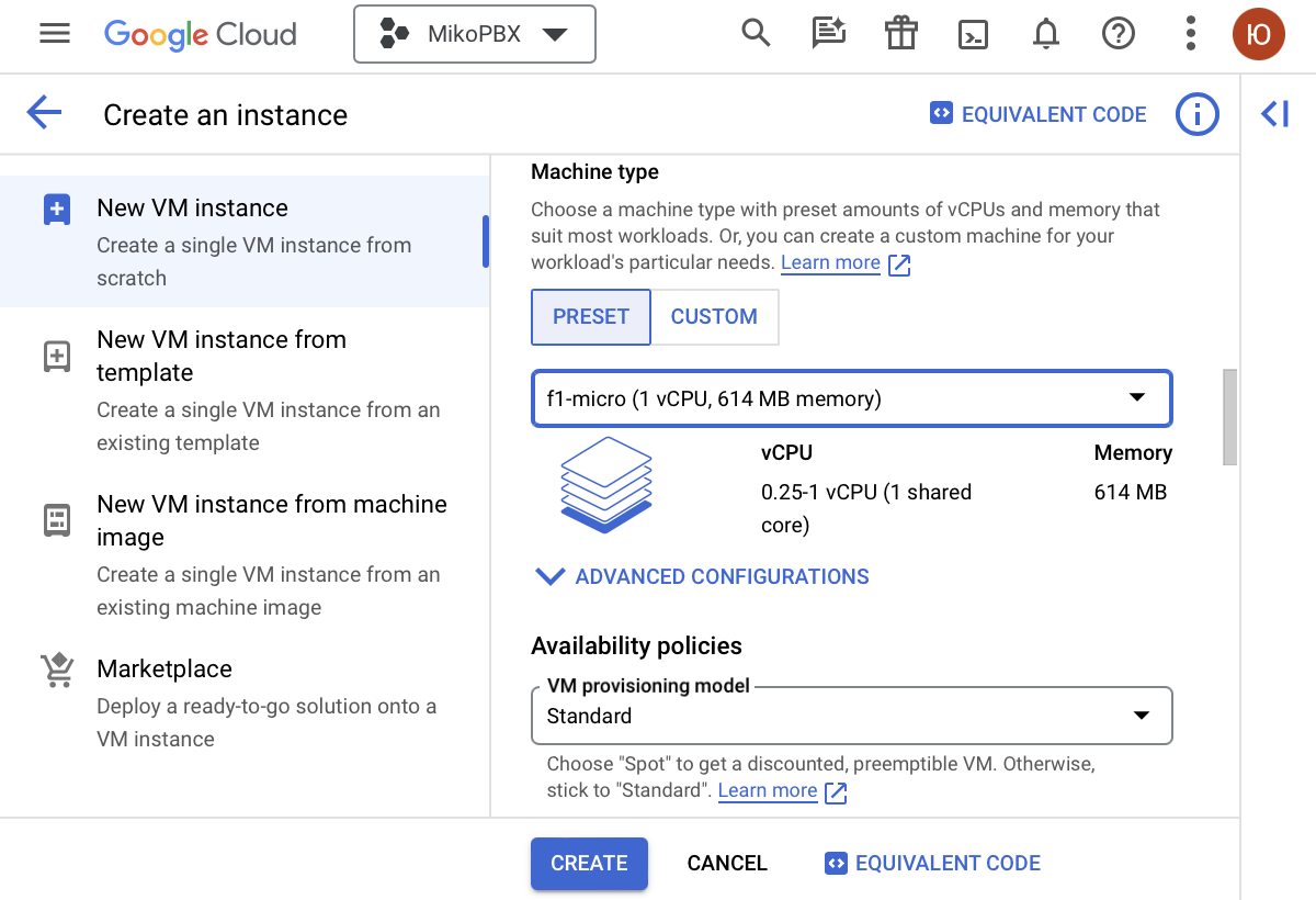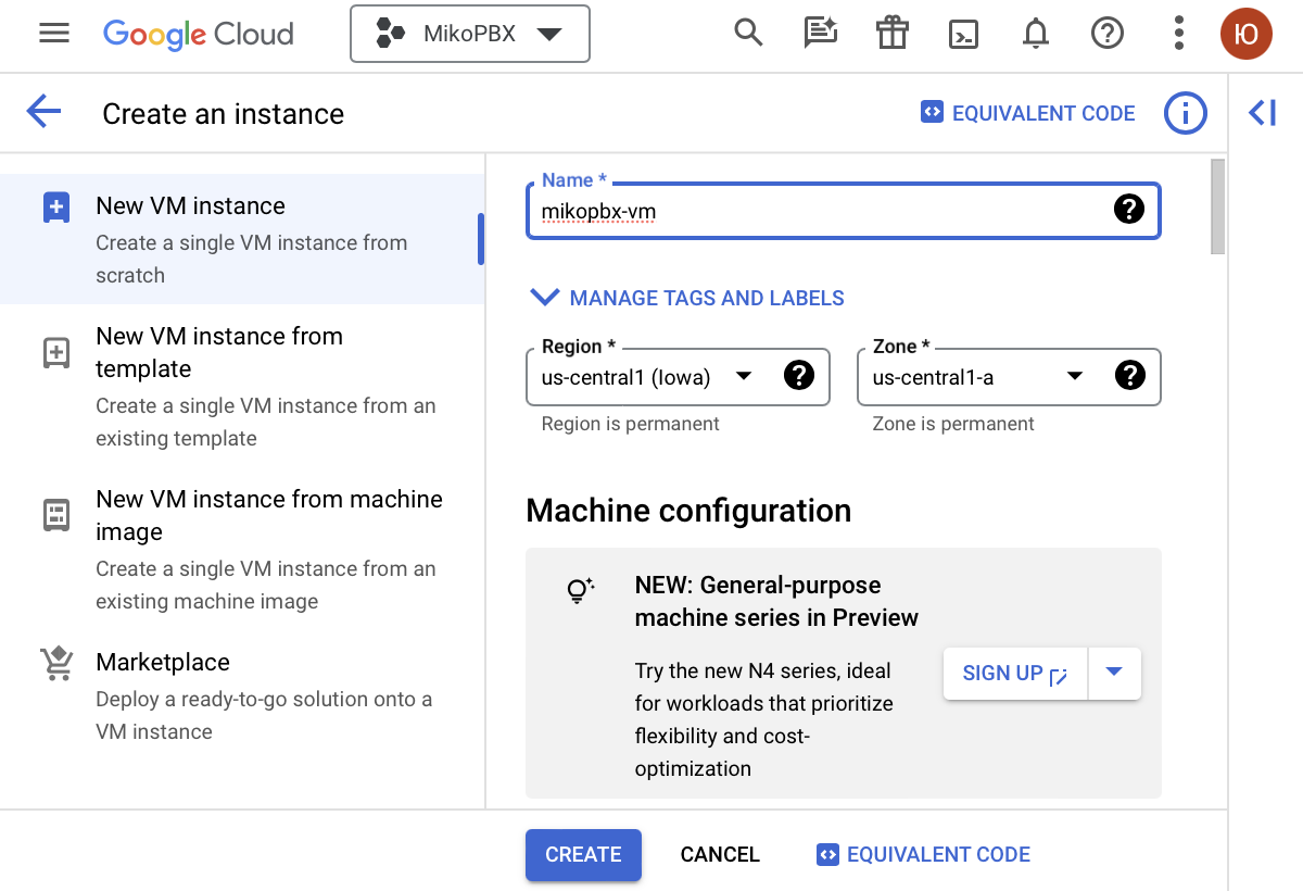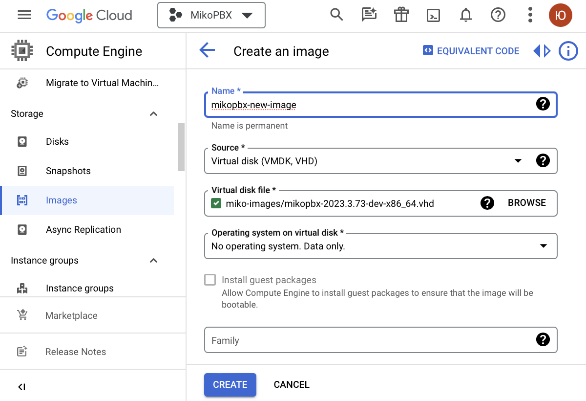 Установка MikoPBX в облако Google Cloud с помощью произвольного образа