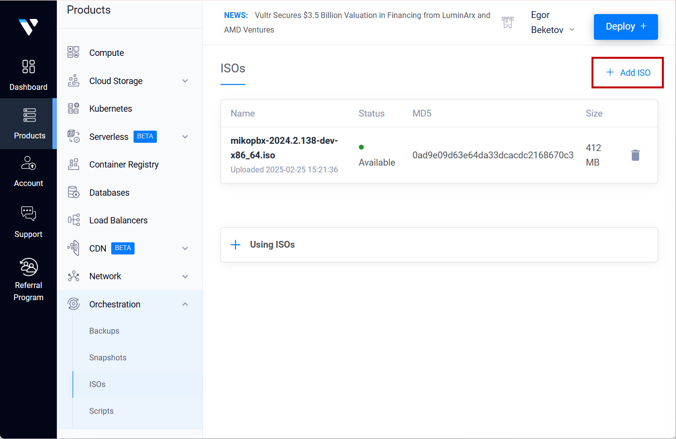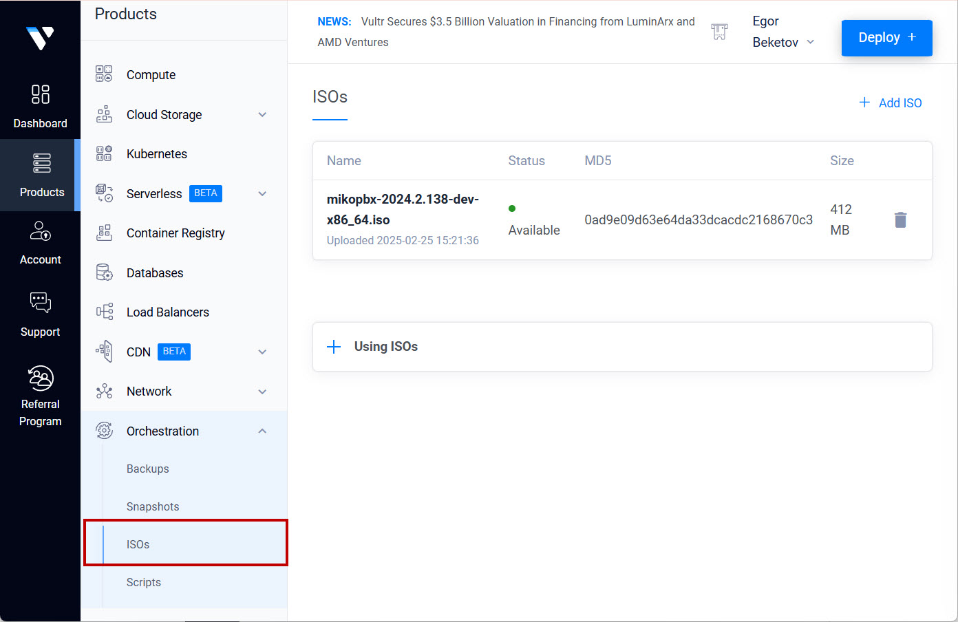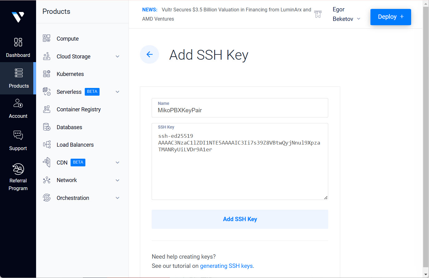 В данной инструкции мы пошагово произведем установку MikoPBX с помощью облачной платформы Vultr.