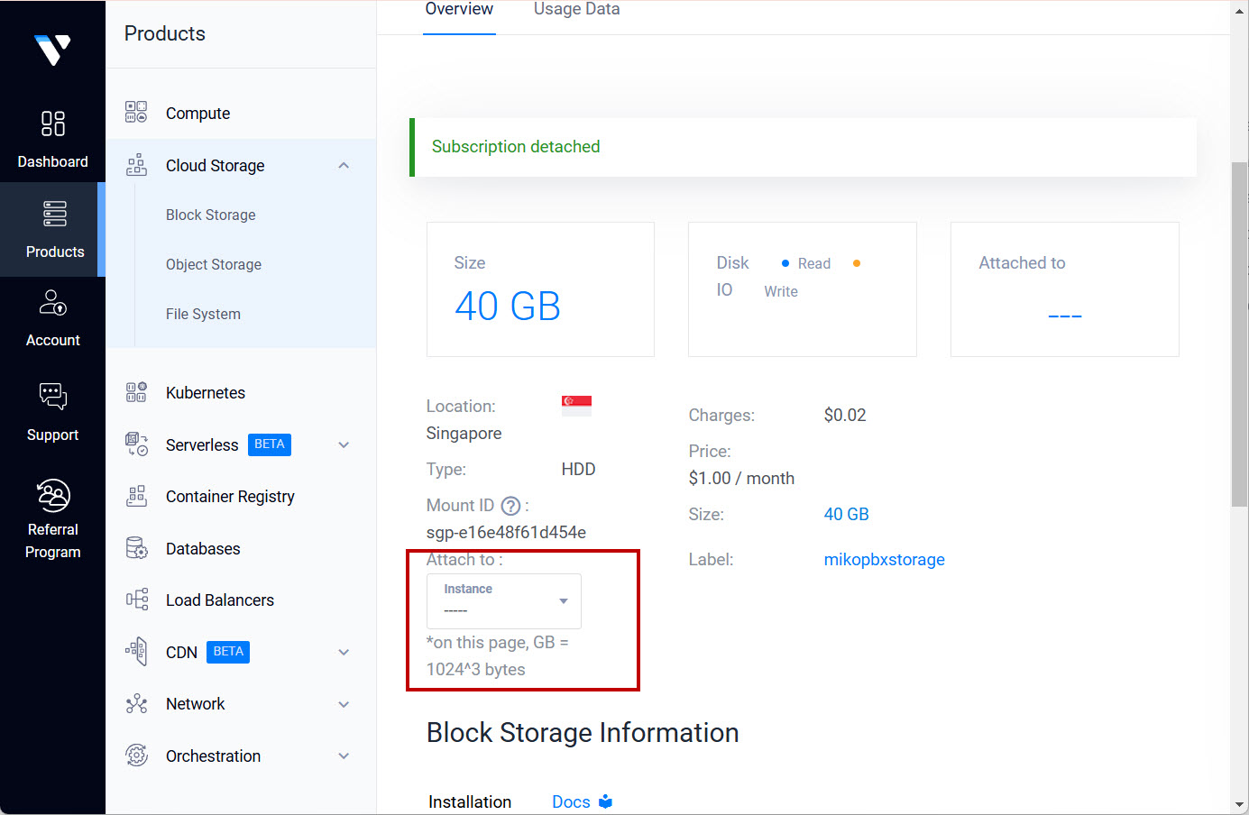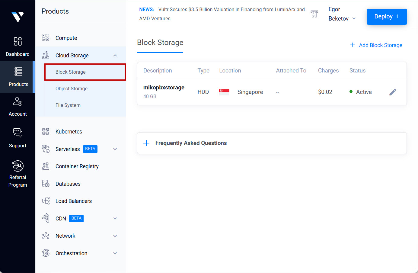 1. Перейдите в раздел "**Cloud Storage**" -> "**Block Storage**":