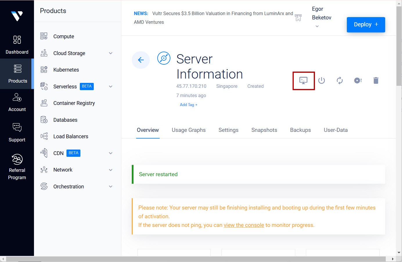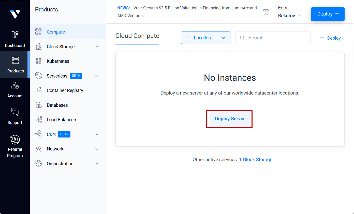 1. Перейдите в раздел "**Products**" -> "**Compute**":