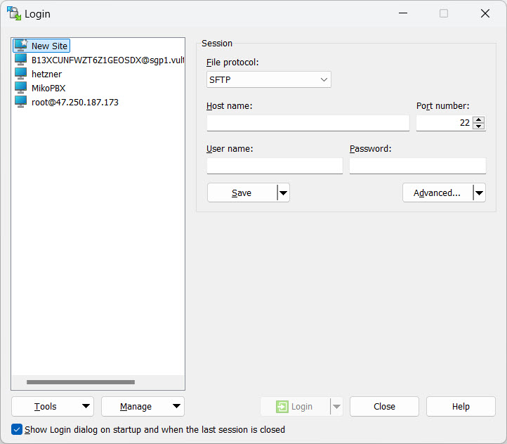 7. Далее необходимо подключиться к хранилищу через WinSCP. Для этого, перейдем в его интерфейс. Выберите "**New Site**":